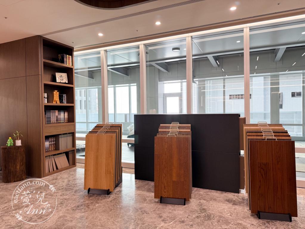 展示館裡每一款地板的規格與厚度都標示得很明確,實際踩一踩、看一看大面積的視覺效果,